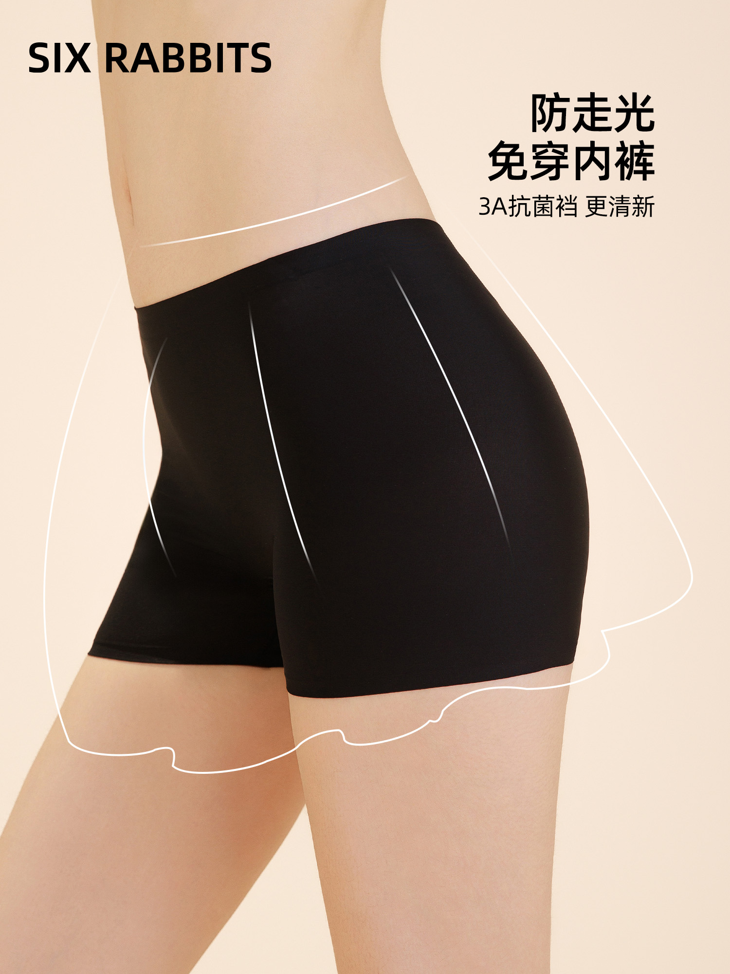 Six Rabbits Women's Safety Shorts, Ice Silk, Seamless, Invisible, Anti-Exposure, Non-Binding, 3A Antibacterial Crotch, Base Layer Boxer Shorts