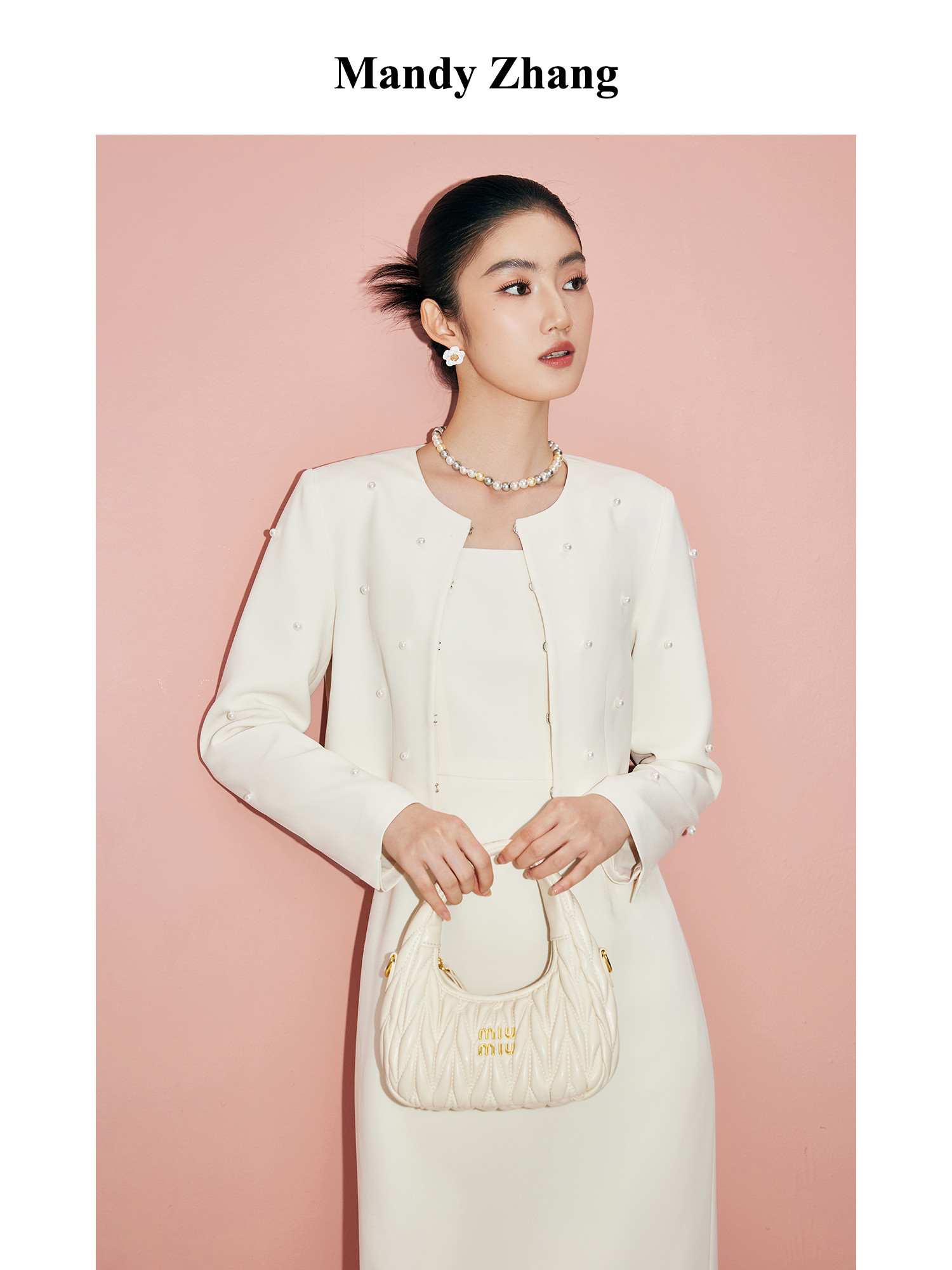 Mandyzhang White Moonlight French Acetate Linen-Like Short Jacket for Women, Autumn Light Luxury Elegant White Top