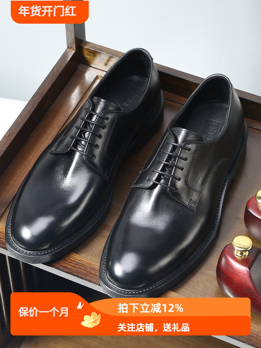 Trd New British Style Business Casual Leather Shoes for Men, Genuine Leather Soft Surface, Korean Style Trendy Round Toe Derby Shoes, Goodyear