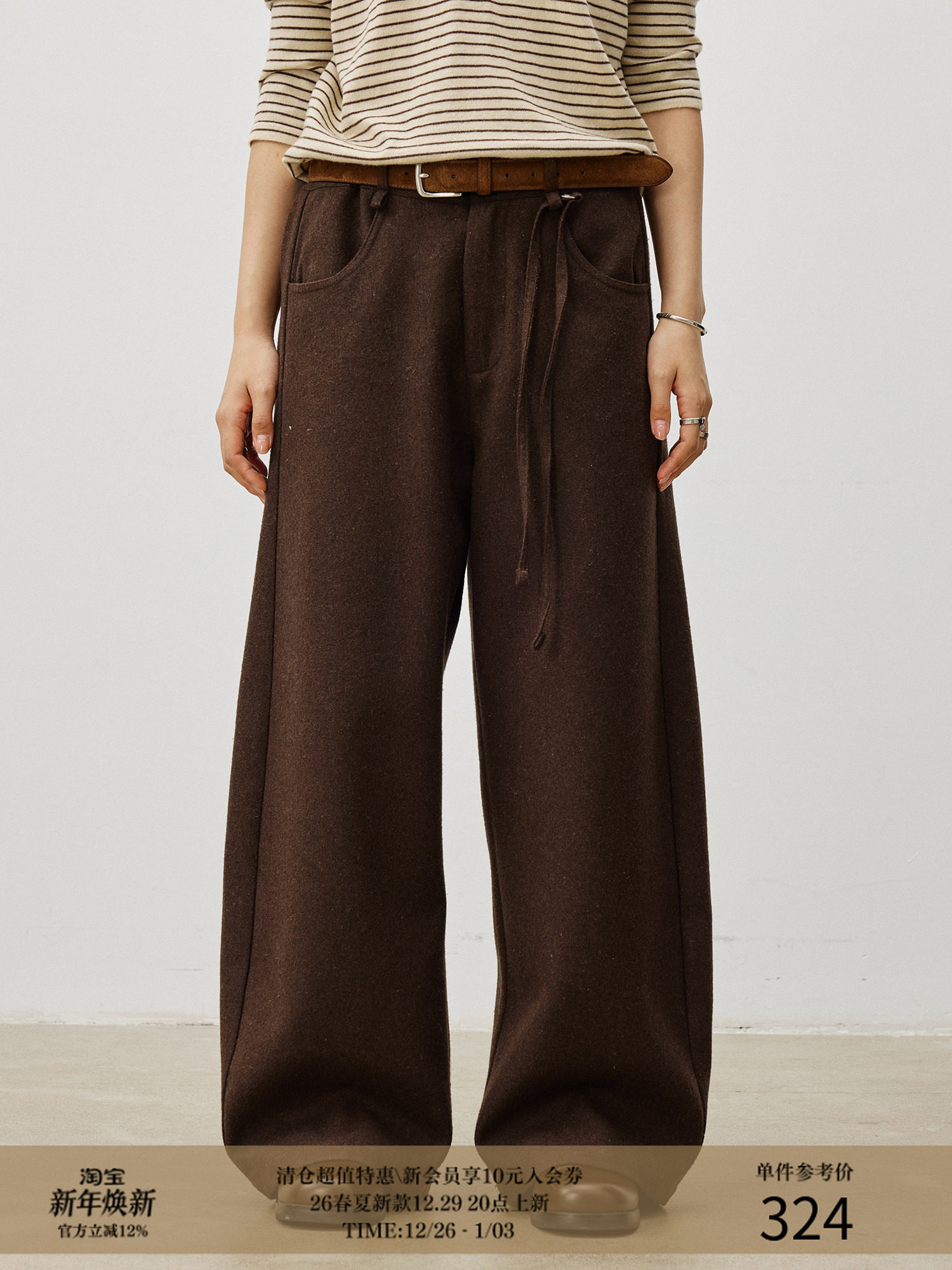 Lr Made 25Aw Wool and Linen Blend Heavy-Duty Composite Wide-Leg Warm Woolen Wrinkle-Free Drawstring Long Trousers