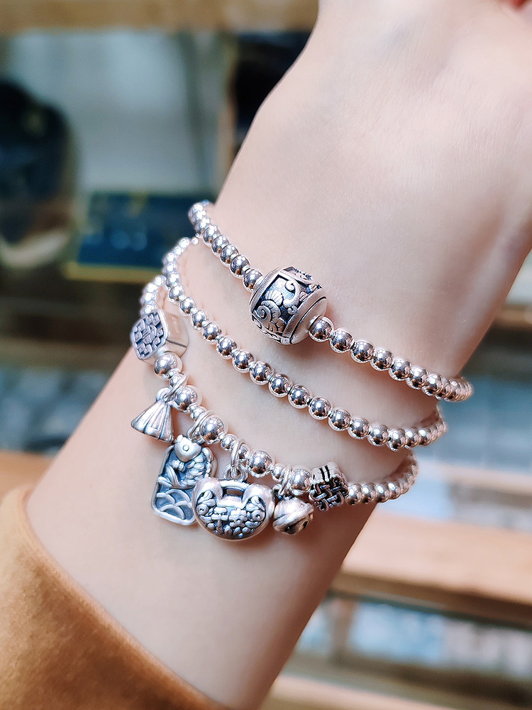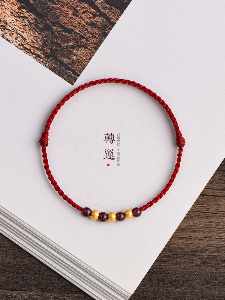 999 Pure Gold Gold Transfer Beads Red Rope Bracelet Anklet for Men and Women with Natural Garnet for Peace and Good Luck Woven Bracelet