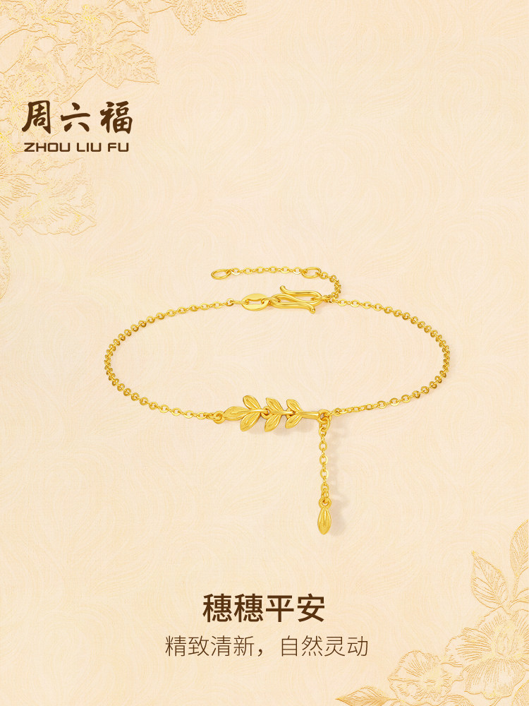 Saturday Fortune Gold Price: 5g Pure Gold Good Luck and Peace Bracelet, Gold Branch and Jade Leaf Series, New Year Gift