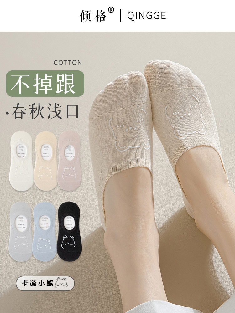 Women's Non-Slip No-Show Socks, Autumn and Winter Low-Cut Short Socks, Spring and Autumn New Popular Invisible White Cotton Socks