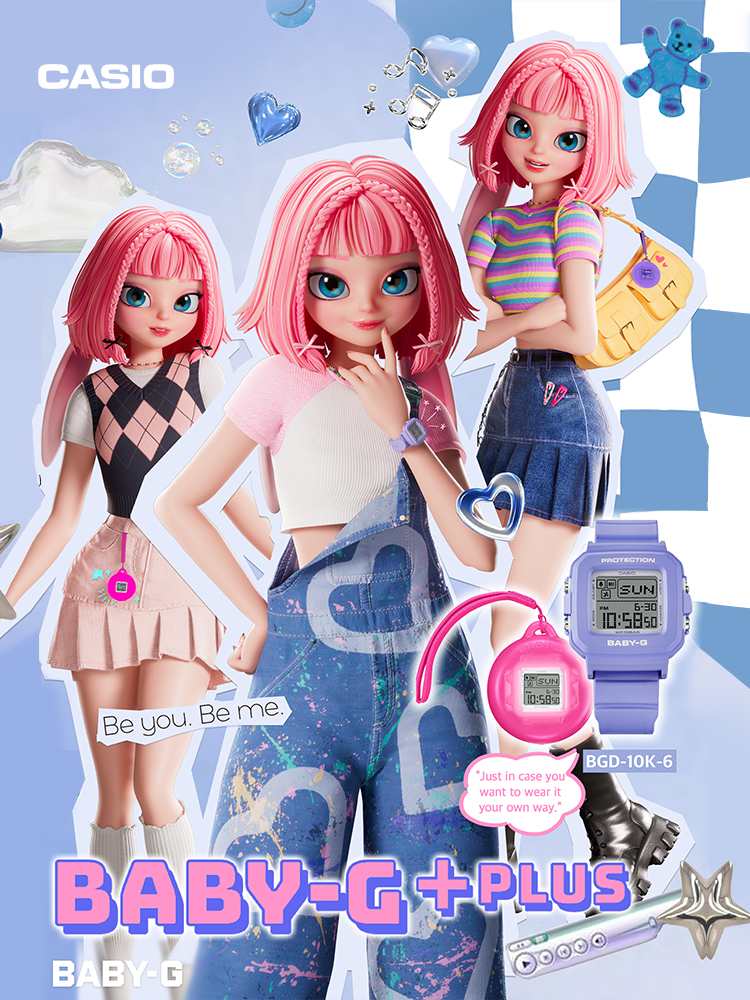 Casio Watch for Women Baby-G Small Square Bubble Gum with Free Watch Stand Y2K Fun Pendant Cute Bgd-10K