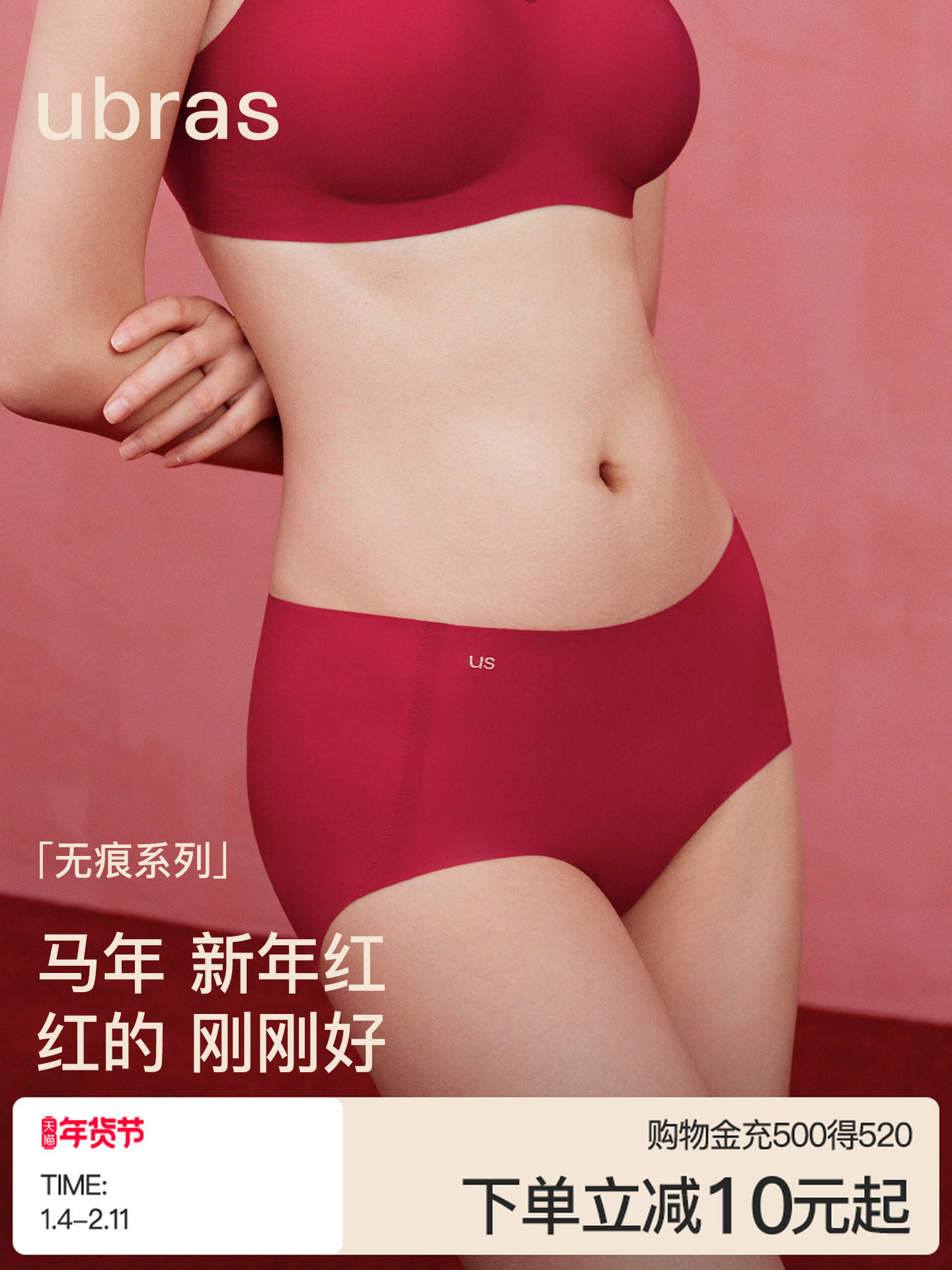 Ubras Size-Free Invisible Seamless Antibacterial Commuter-Friendly Dry Breathable Comfortable High-Elastic Solid Color Mid-Waist Women's Underwear