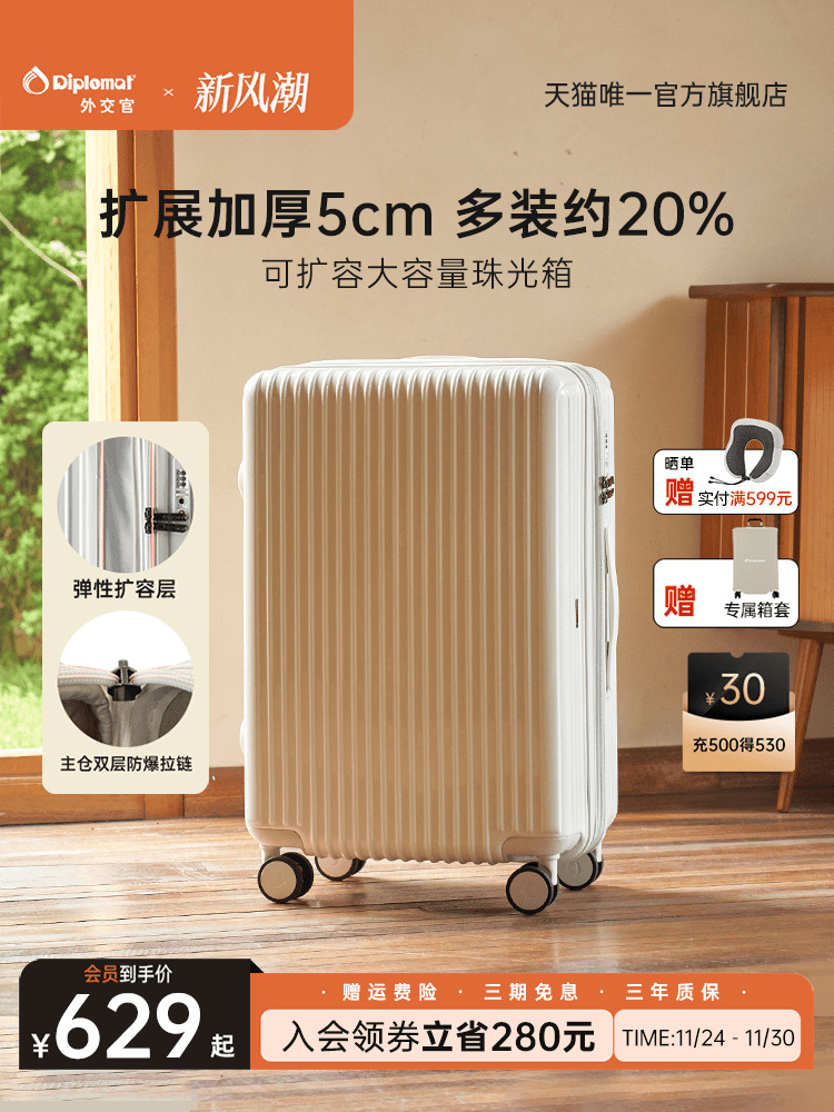Diplomat Pearl Suitcase Password Box Trolley Case Large Capacity Travel Suitcase Women's 2025 New Model