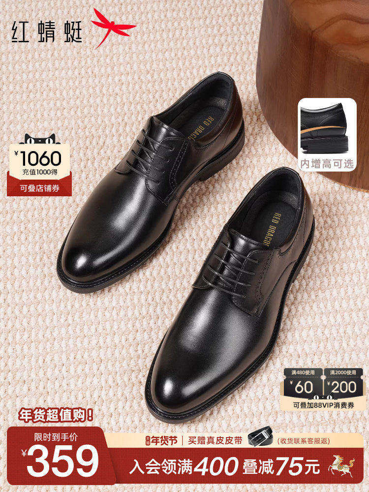 Red Dragonfly Men's Shoes Autumn and Winter New Business Classy Formal Leather Shoes Men's Genuine Leather Height-Increasing Wedding Groom Shoes Men's Style