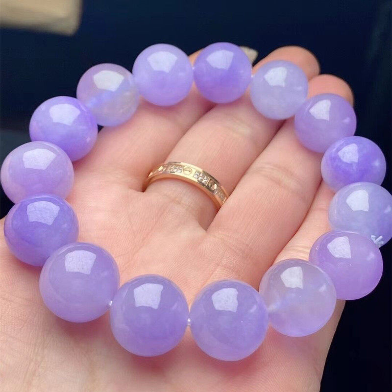 Wangcai Jewelry Myanmar Old Mine A-Grade Natural Jade Bead Chain, Glutinous Ice Type Violet Beads Bracelet with Certificate