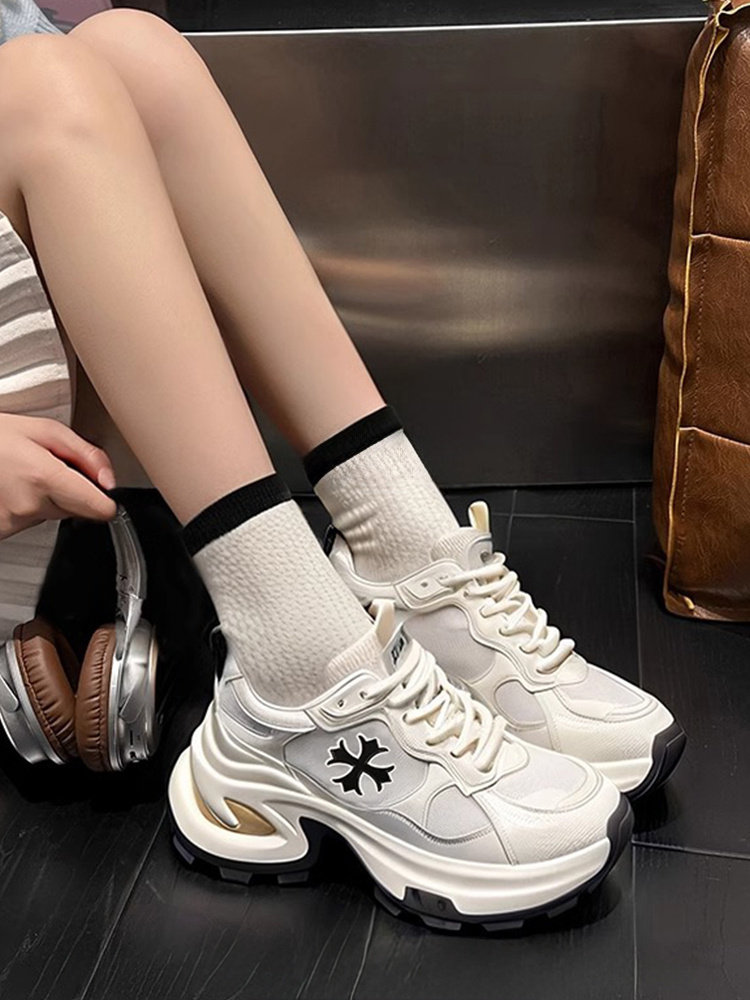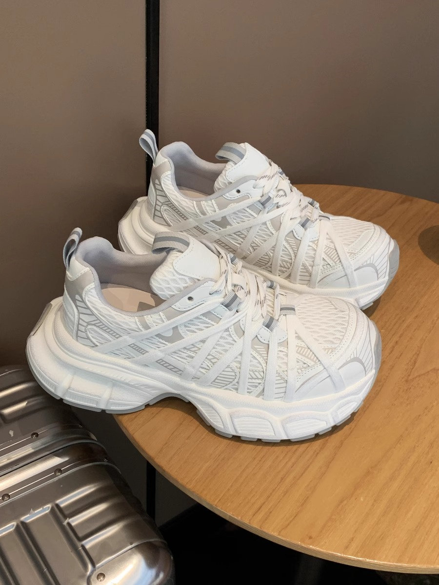 Hong Kong Style Height-Increasing Thick-Soled Dad Shoes for Women, 2025 Spring New Model, Mesh Breathable Niche Casual Sneakers