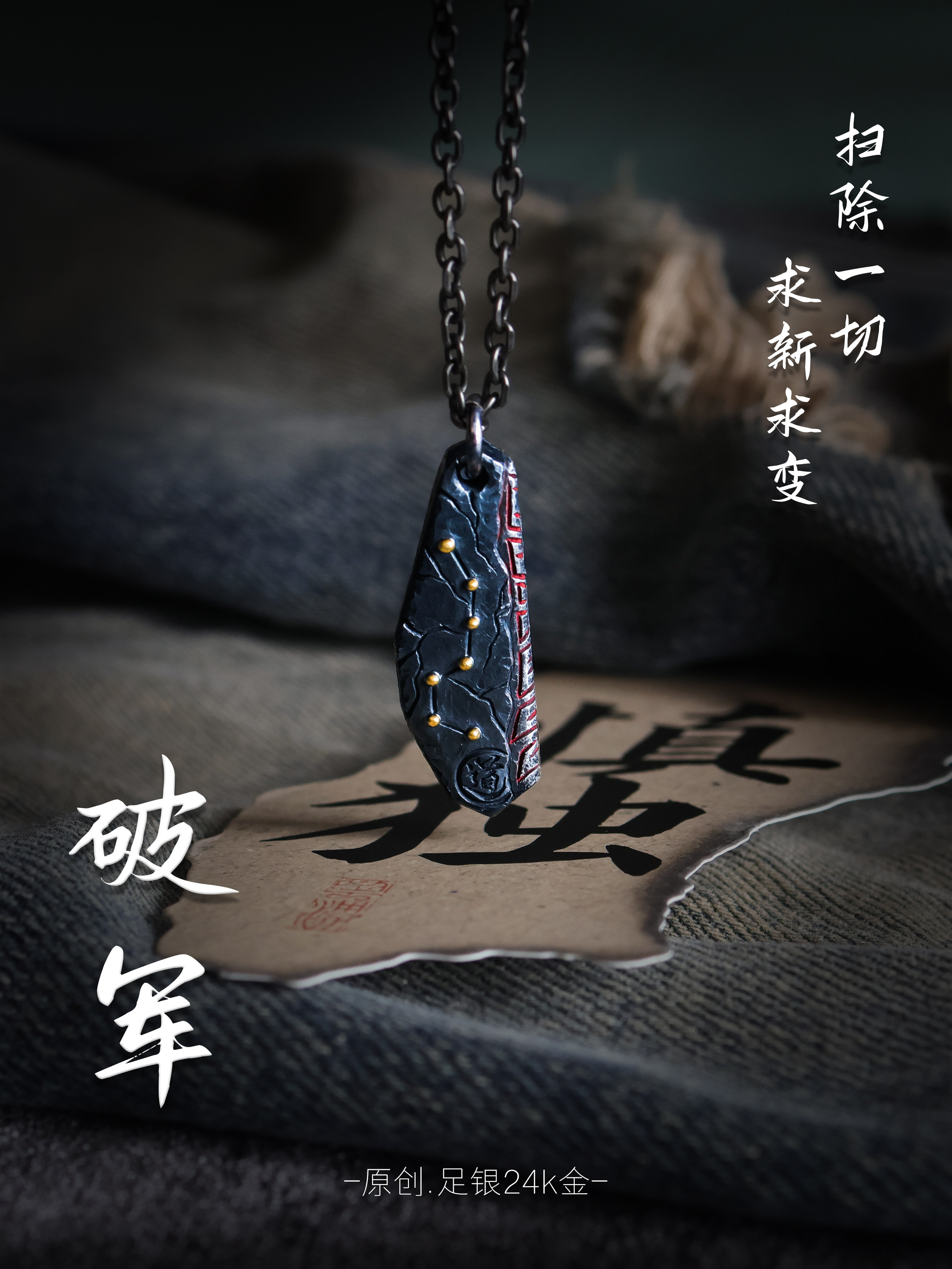 Original Design Beidou Seven Stars Gold-Plated Sterling Silver Pendant Hand-Inlaid with Cinnabar Taoist Style Gift Necklace for Men, Niche Style
