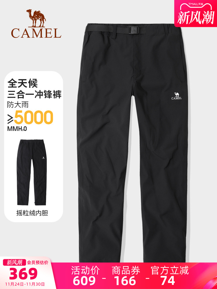 Camel Outdoor Three-In-One Pants for Men, Autumn and Winter Windproof, Waterproof, Fleece-Lined, Thickened Hiking and Mountaineering Trousers, Ski Pants