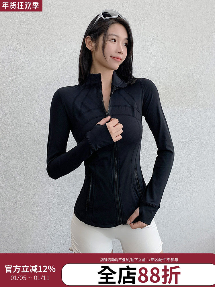 Annerun Sports Jacket Women's Fitness Quick-Drying Slim Fit Top Long-Sleeved Casual Running Stand-Up Collar Yoga Wear
