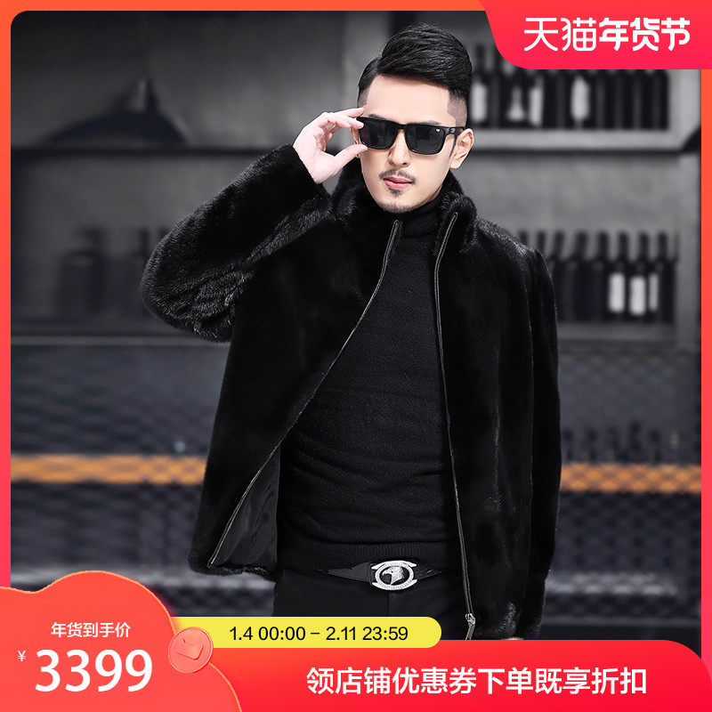 Large Size Men's Full Mink Stand Collar Real Mink Fur Coat, Winter Long-Sleeve Fur Jacket, Young Style Clearance Sale