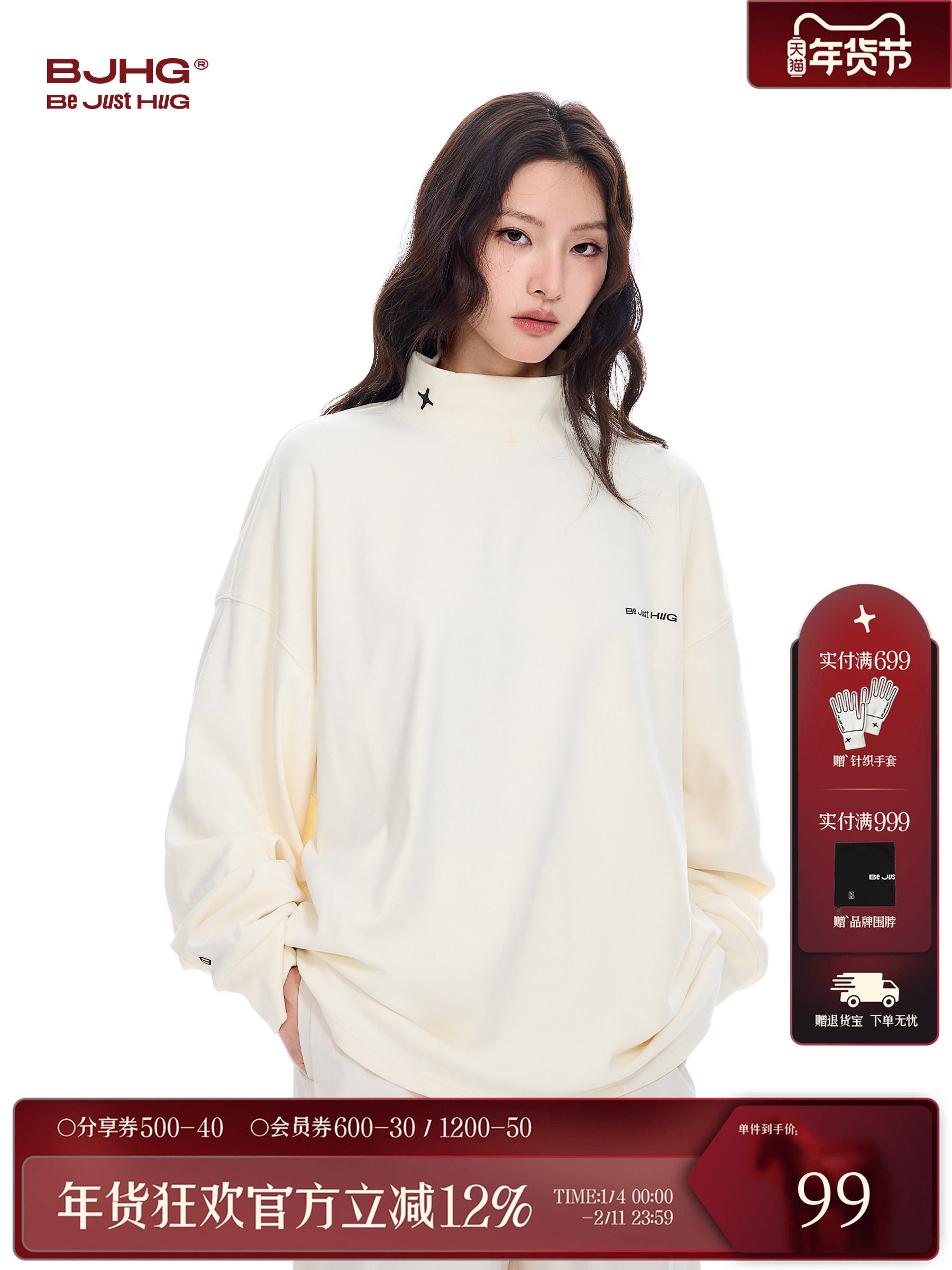 Bjhg Reckless and Reckless in Its Approach, Comfortable Velvet Half-High Collar Base Layer Sweatshirt for Men, Winter Inner Wear, American-Style Loose Long-Sleeve T-Shirt