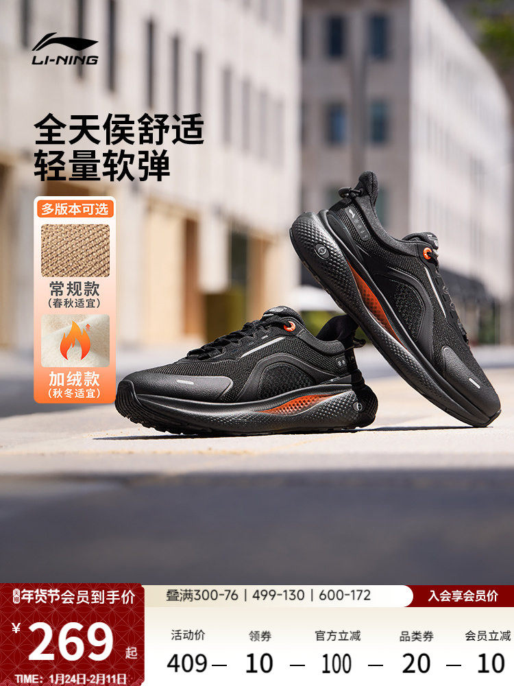 Li-Ning Soft Plus 2丨 Men's Casual Shoes, New Winter Model, Commuting, Warm, Fleece-Lined, Running Sports Shoes