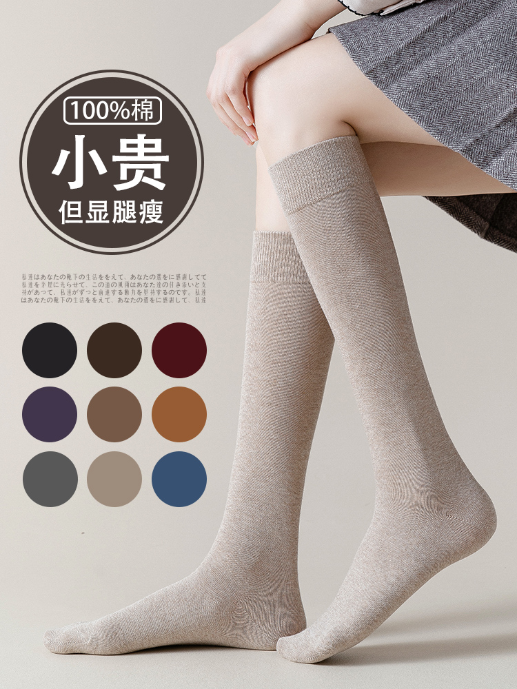 Women's Calf Socks for Spring, Autumn, and Winter, Japanese Style, Full Cotton, Jk Mid-Length Socks, Pure Cotton, Black, Summer Knee-High Socks for Women