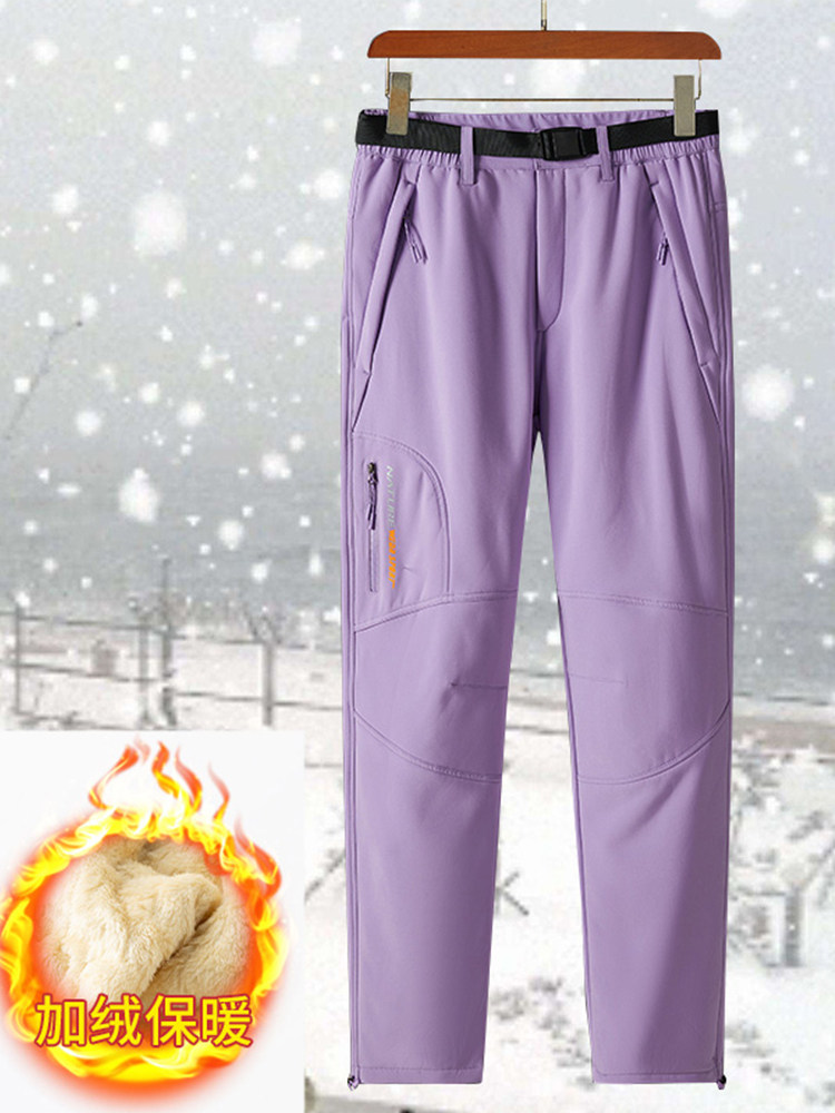 Women's Softshell Pants with Fleece Lining, Thickened, Windproof, Waterproof, Large Size, Outdoor Hiking Pants, Cold-Proof Ski Pants