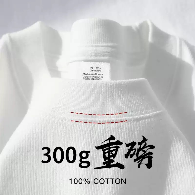 Xinjiang Cotton 300g Heavyweight Short-Sleeve T-Shirt, Pure White, Non-See-Through, Unisex Couple Loose Half-Sleeve Round Neck Base Shirt, Trendy