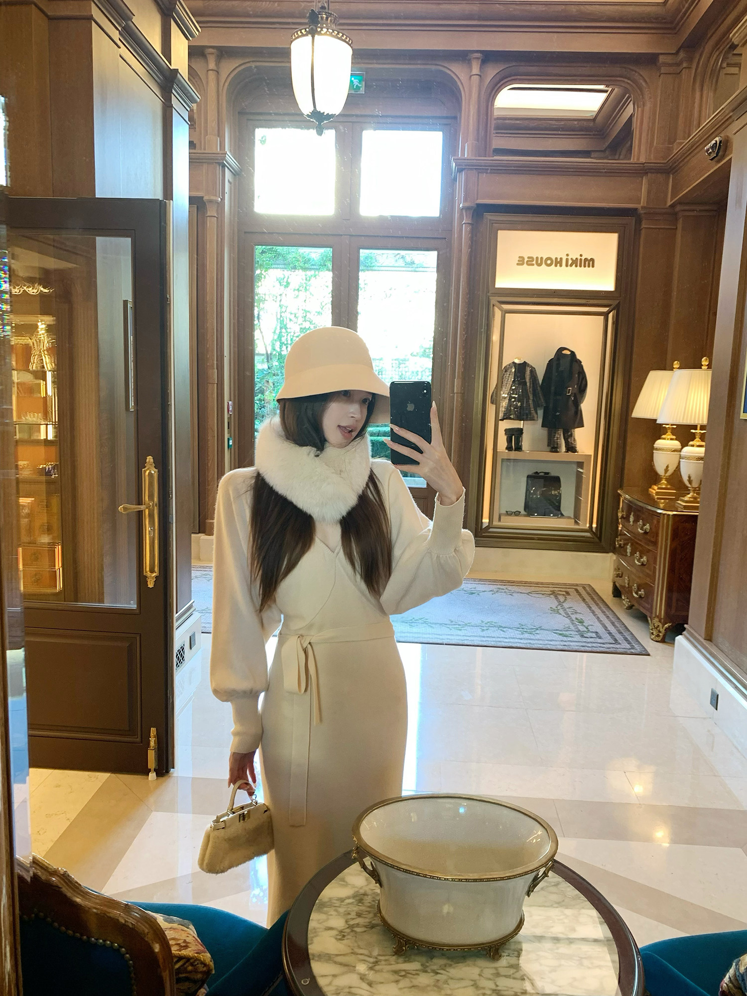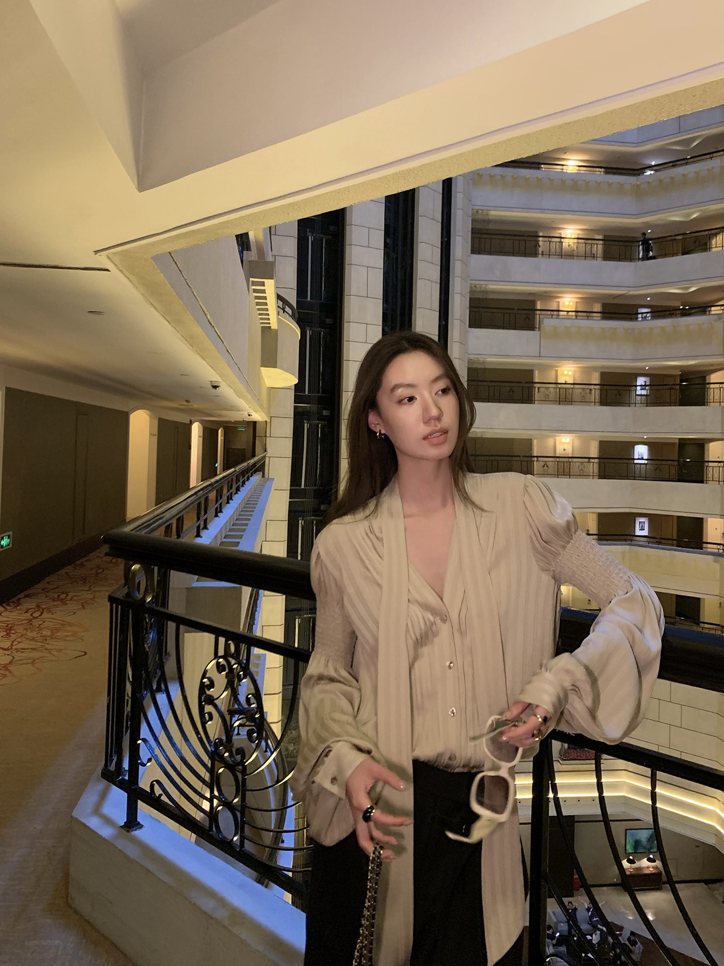 Gakee Official Antique Gold V-Neck Shirt for Women, New Autum Style, Ribbon, High-End Fashion, Long-Sleeved Shirt