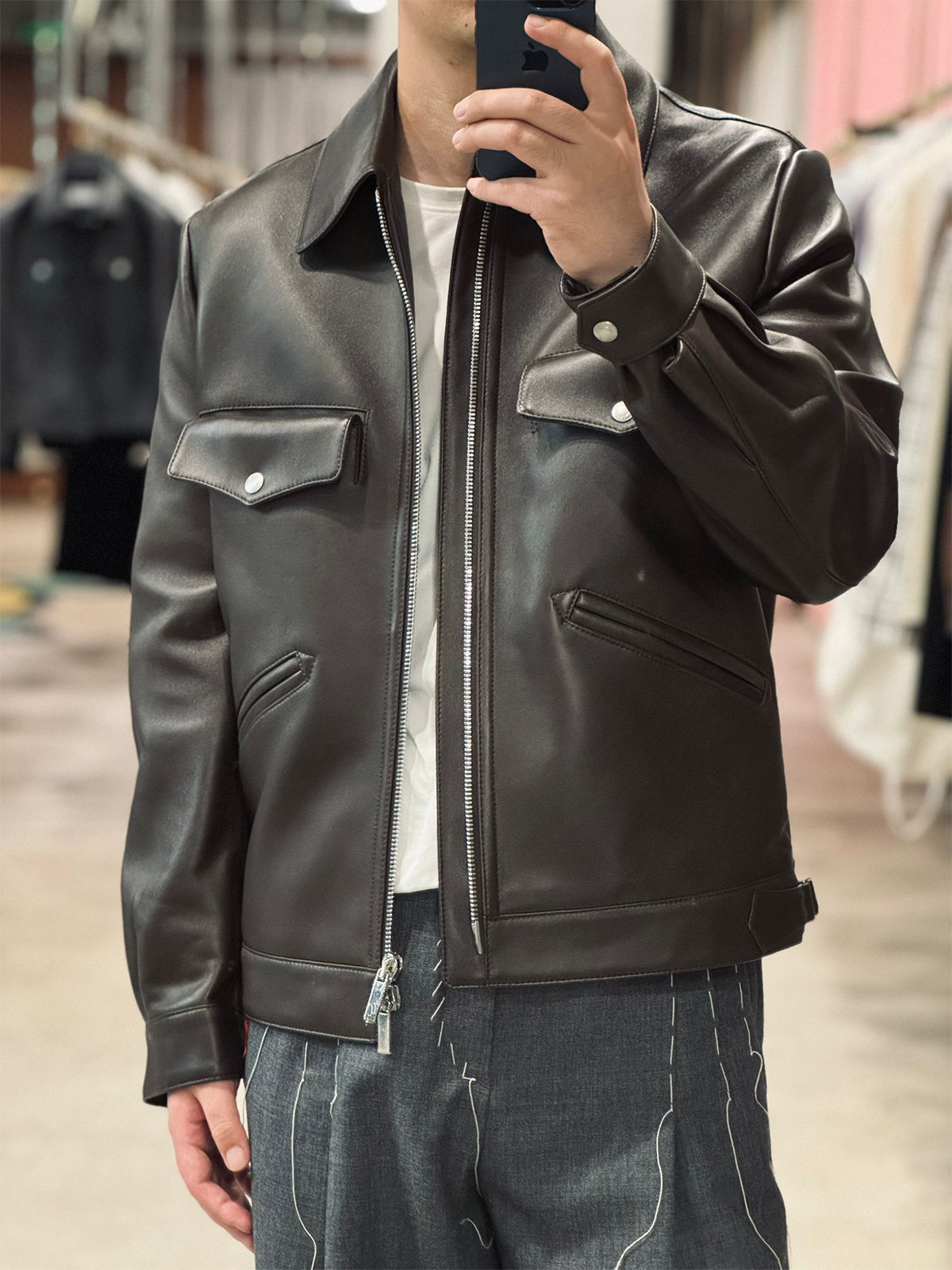 58000Cd Version “Kimjones Zhou Tianwang” Two-Tone French Lambskin “Retro Denim Jacket Leather Coat”