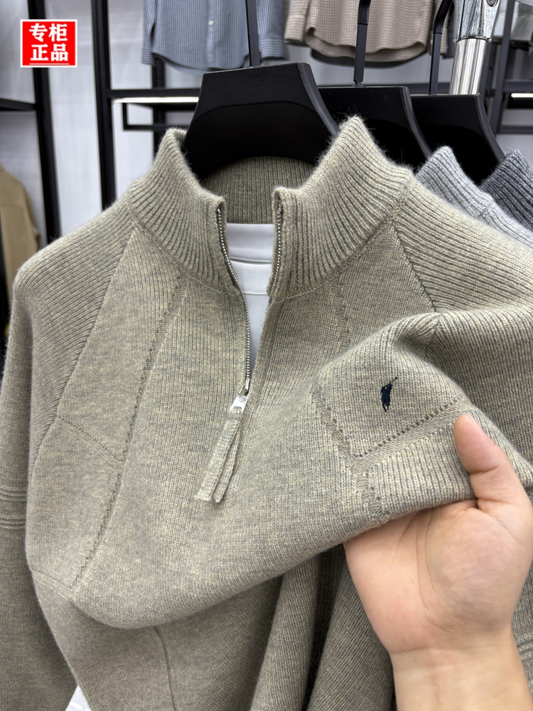 [Outlet Discount] Paul Men's Wool Sweater Winter New Thickened Half-Zip Knitted Sweater Stand Collar Sweater for Men