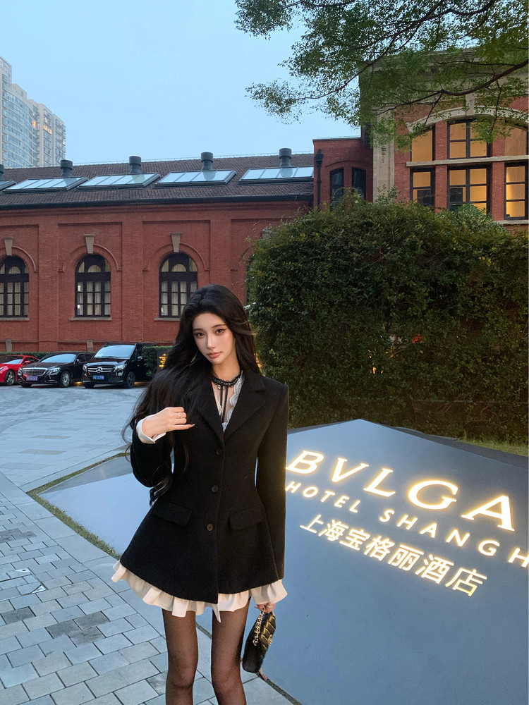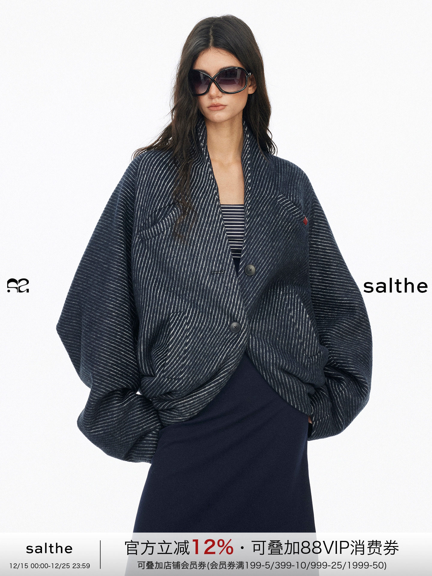 Salthe Salt Tea* Prussian Blue Chanel-Style Wool Loose Drop-Shoulder Batwing Sleeve Woolen Coat Winter New Arrival
