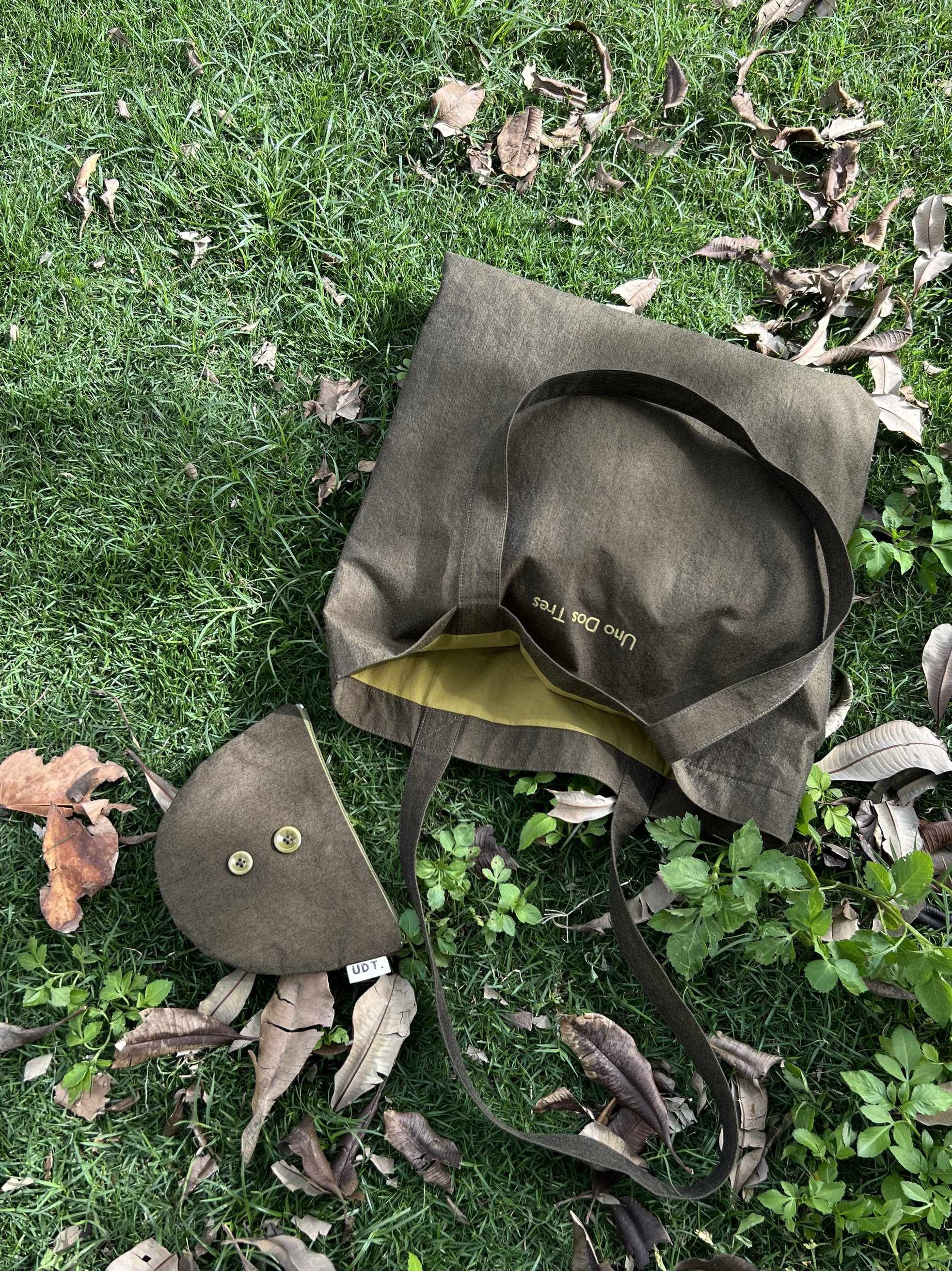 Uno Dos Tres Retro High-End Versatile Yarn-Dyed Cotton Moss Green Shoulder Bag with Built-In Storage Bag