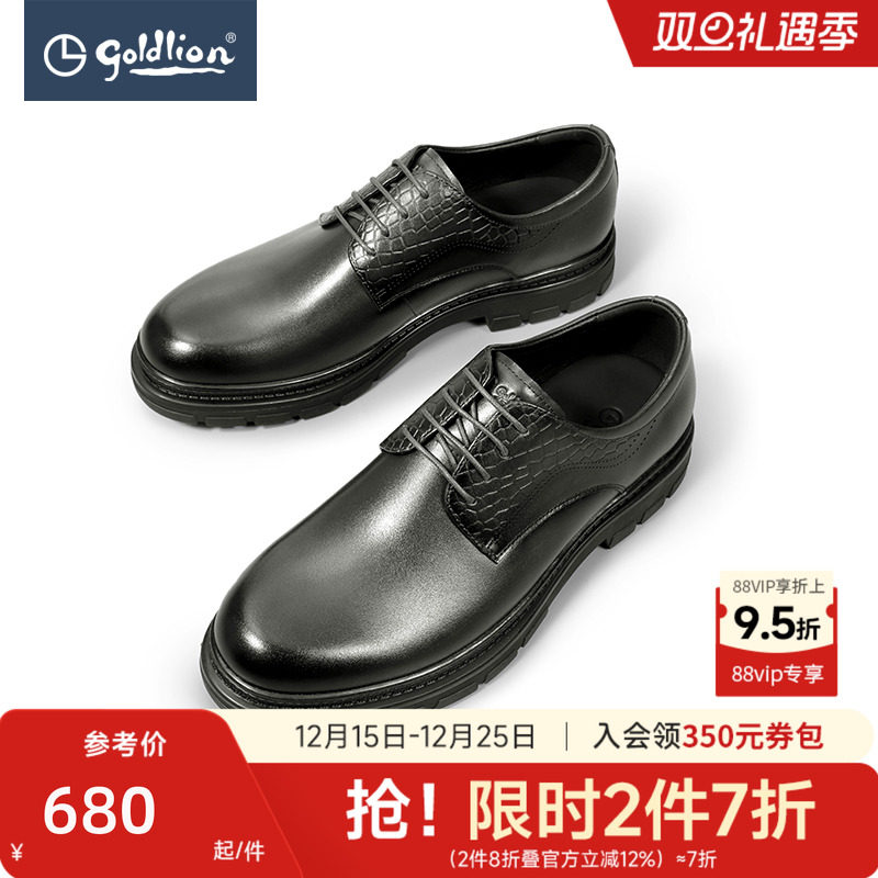 Goldlion New Leather Shoes Men's Groom Wedding Shoes Breathable Thick-Soled Derby Shoes Men's Genuine Leather Shoes