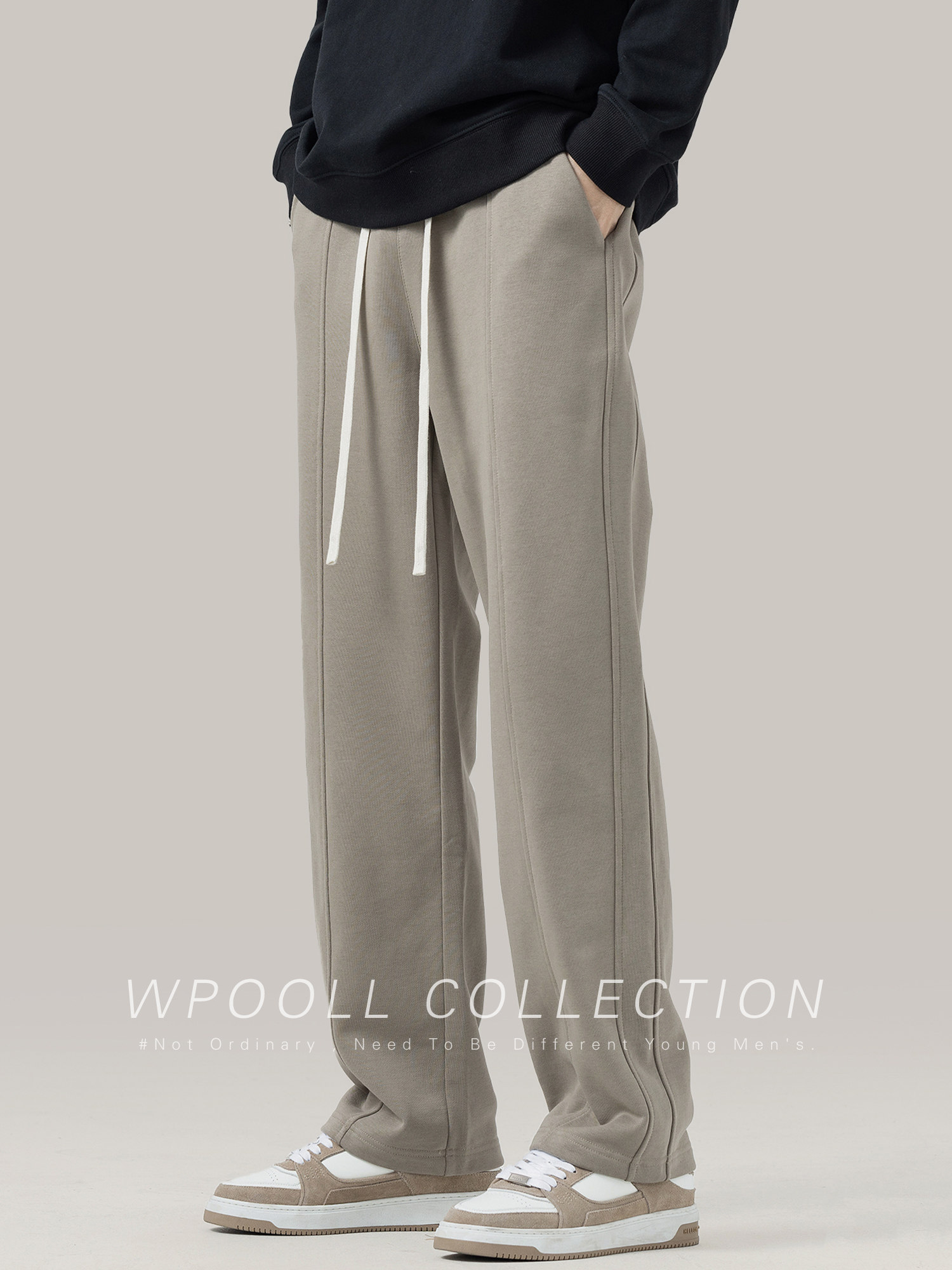 American High Street Thickened Sweatpants for Men, Autumn Trendy Brand Heavyweight Fleece-Lined Sweatpants, Loose Straight-Leg Casual Long Pants for Men