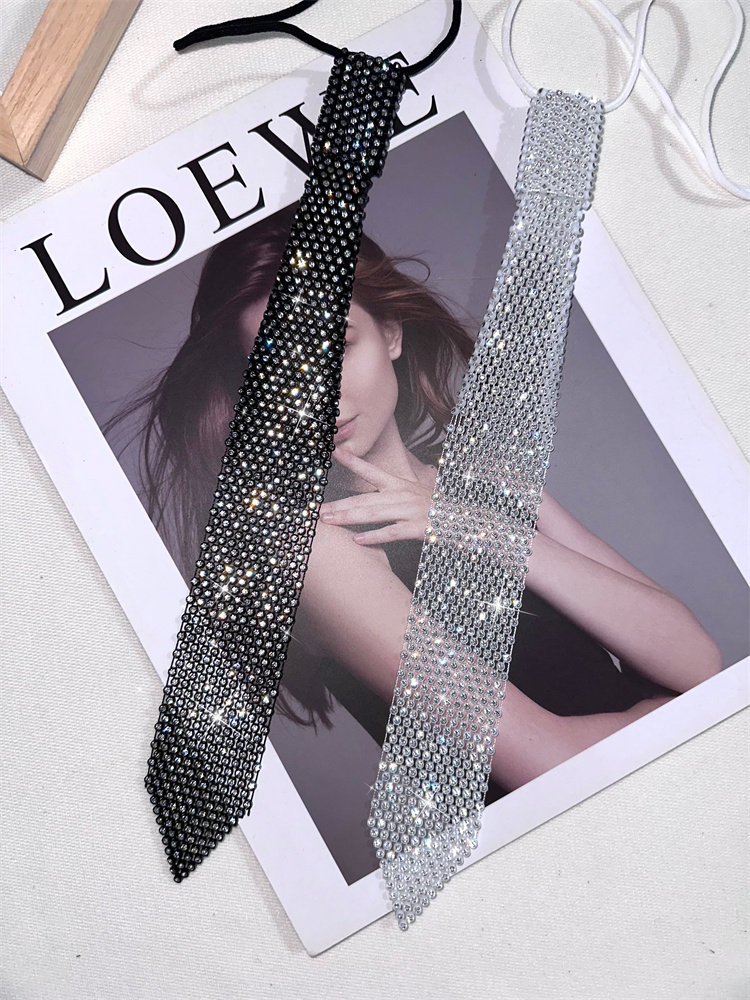 High-Quality Neck Tie with Rhinestones, Crystal Jk Small Tie for Women, Decorative Lazy Tie That Doesn'T Need to Be Tied, Unique Shirt Accessory, Trendy