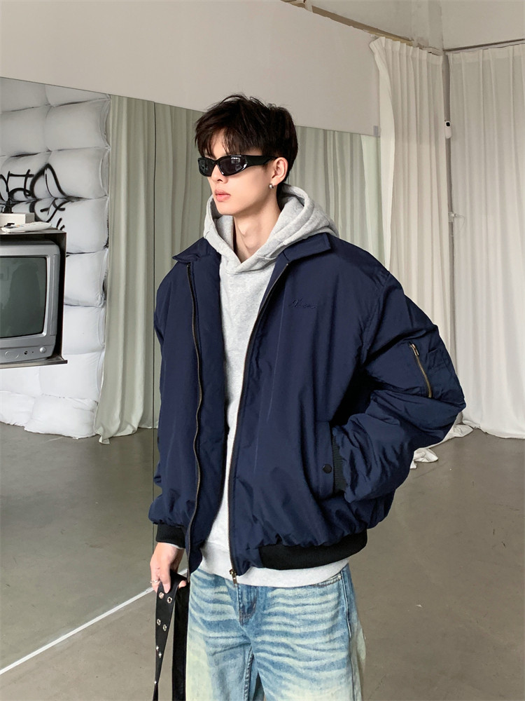 Chapter1 American Vibe Retro Lapel Flight Jacket Warm Cotton Bomber Short Jacket Men's Top