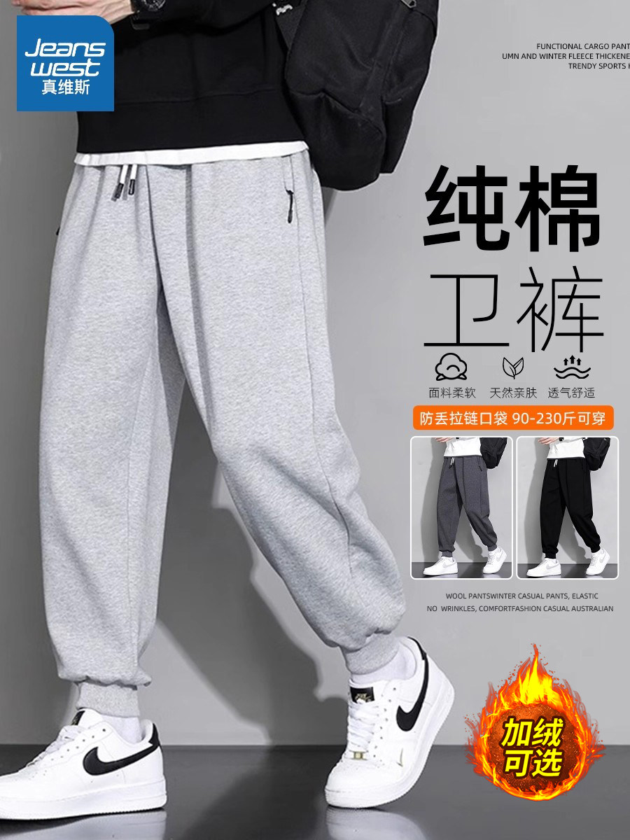 Jeanswest Men's Sweatpants Autumn and Winter 2025 New Pure Cotton Casual Fleece-Lined Thickened Jogger Pants Men's Clothing