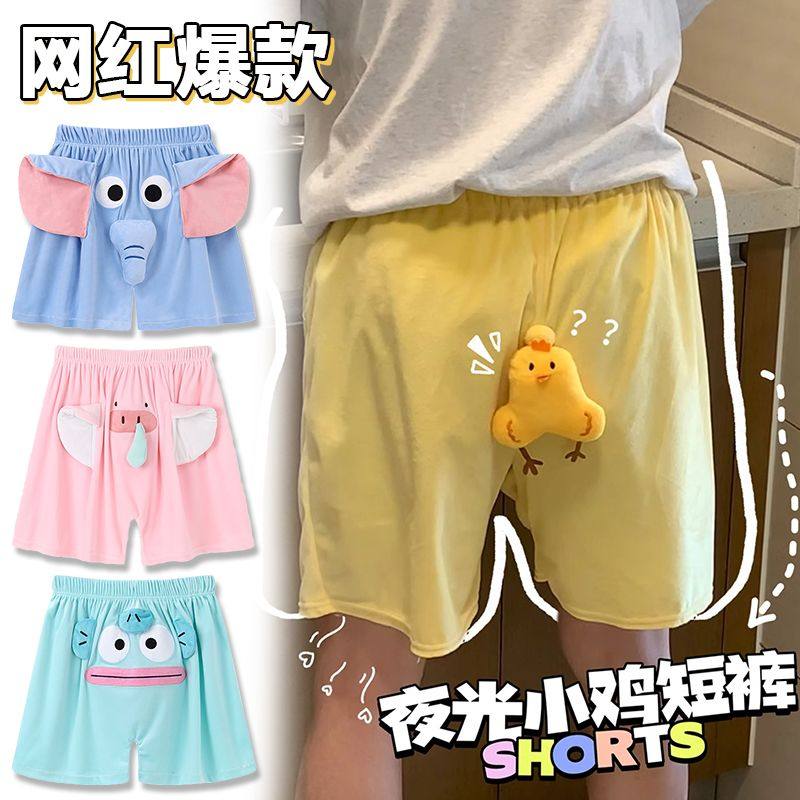 Cute and Funny Turtle and Little Yellow Chicken Casual Sleep Shorts, Summer Style Couple Elephant Nose Shorts