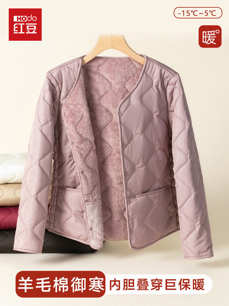 Red Bean Wool Cotton Lining 2025 Women's Slim Fit Fleece-Lined Warm Thickened Cotton Jacket for Middle-Aged and Young People, Lightweight Coat