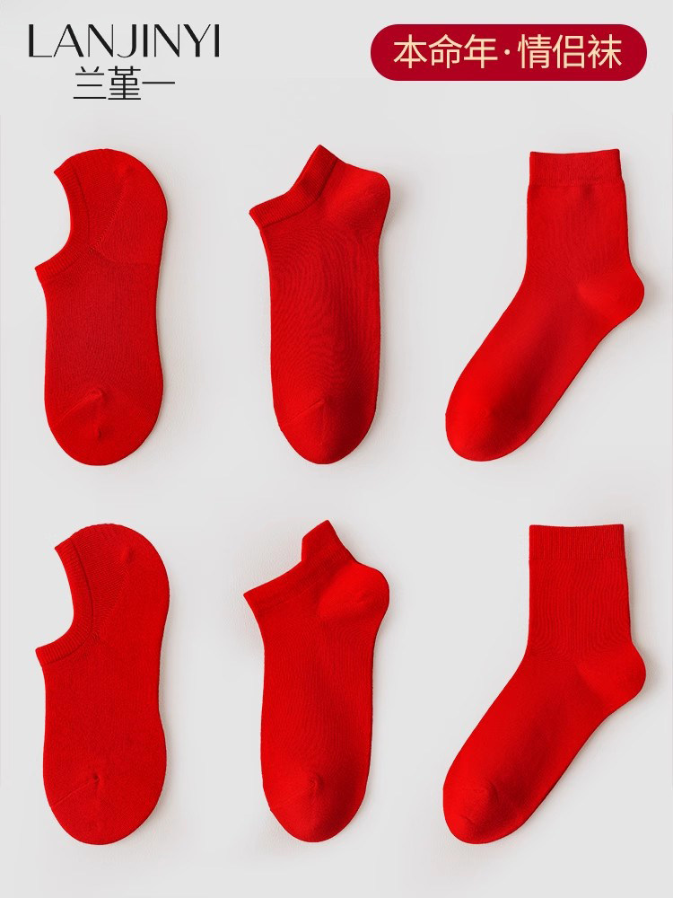 Red Socks for Couples in Their Zodiac Year, a Pair of Wedding Socks, Pure Cotton Short Socks, New Year Gift for the Year of the Snake, Long Socks