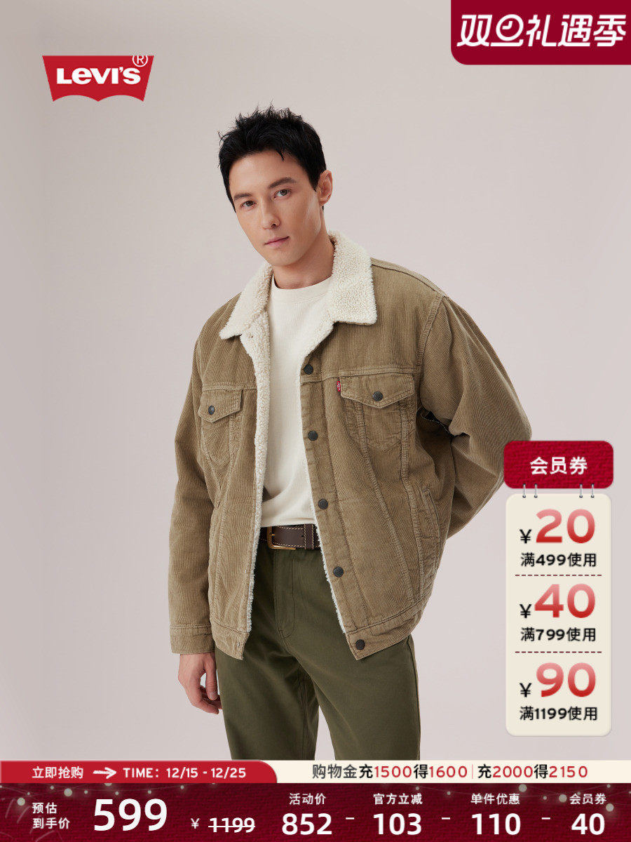 Levi's Men's Retro Harrington-Style Lapel Loose-Fitting Warm Faux Shearling Denim Thick Jacket