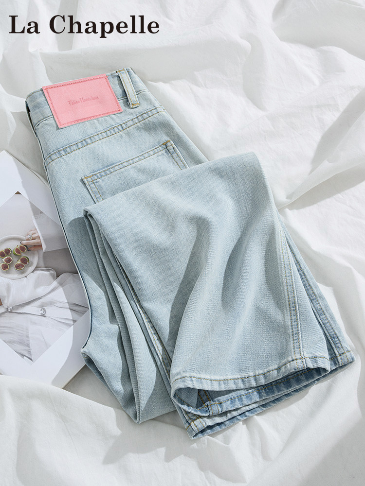 La Chapelle Slim-Fit Fleece-Lined Wide-Leg Jeans for Women, Autumn and Winter 2025 New High-Waisted Loose Drape Straight-Leg Pants
