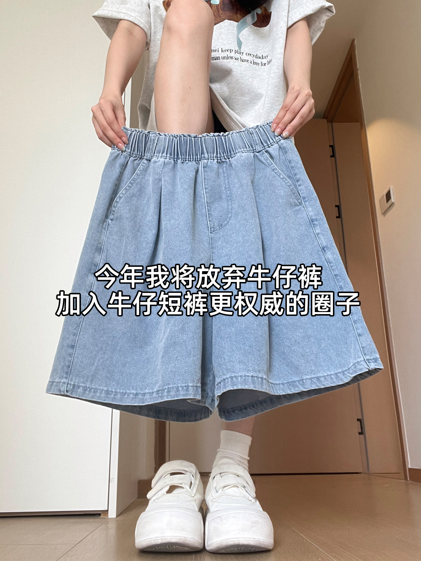 Blue Denim Shorts for Women, Summer 2025 New Style, Casual High-Waisted, Thin, Straight-Leg, Loose Wide-Leg Pants