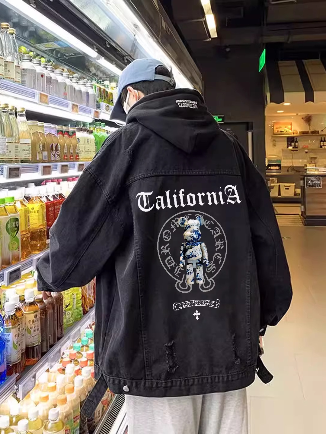 Kasumi Isuke American-Style Workwear Denim Jacket for Men, Spring and Autumn Trendy Brand Retro Clothing, Loose Casual Hooded Jacket