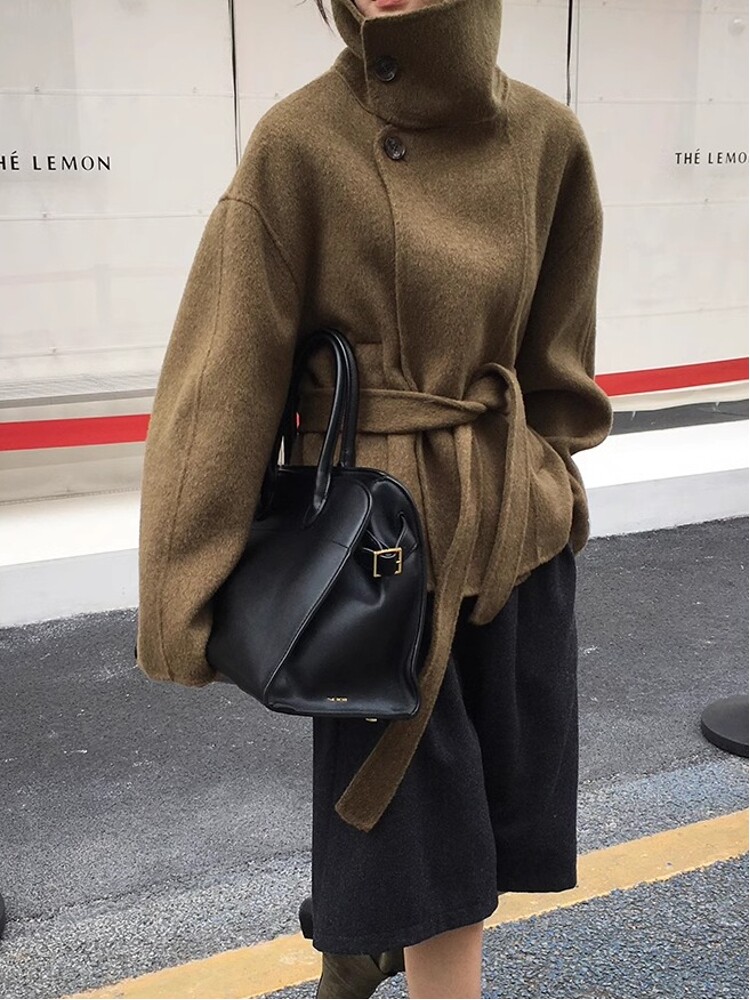 2025 Autumn New Style Kim Min-Hee Same Style Korean Version Loose Stand Collar Double-Sided Wool Coat Short Belted Woolen Jacket
