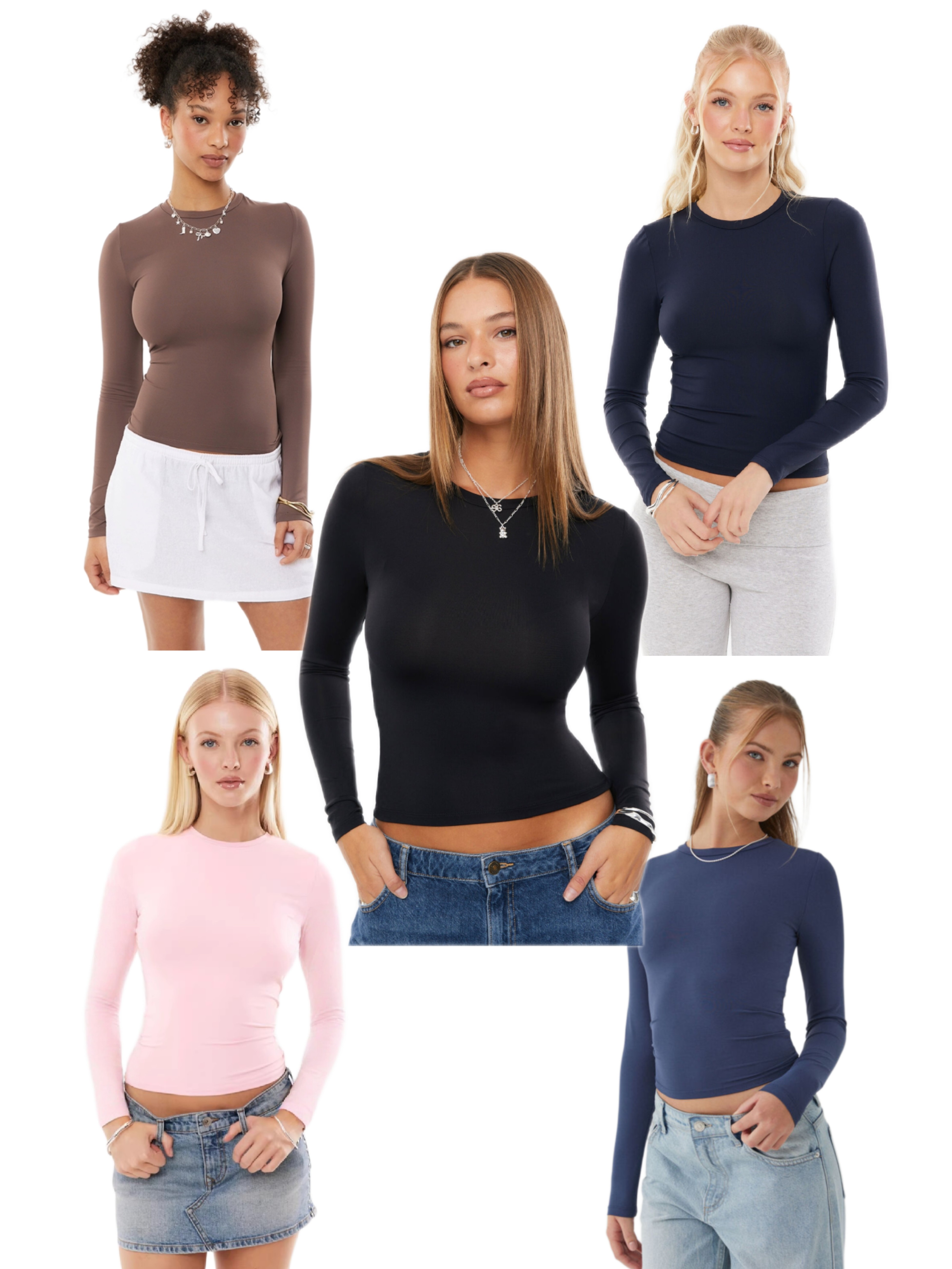Aussie S Home Connection (Sk*M Alternative)! Solid Color Shaping Seamless Stretchy Long-Sleeve T-Shirt for Women, Hot Girl Top, Export