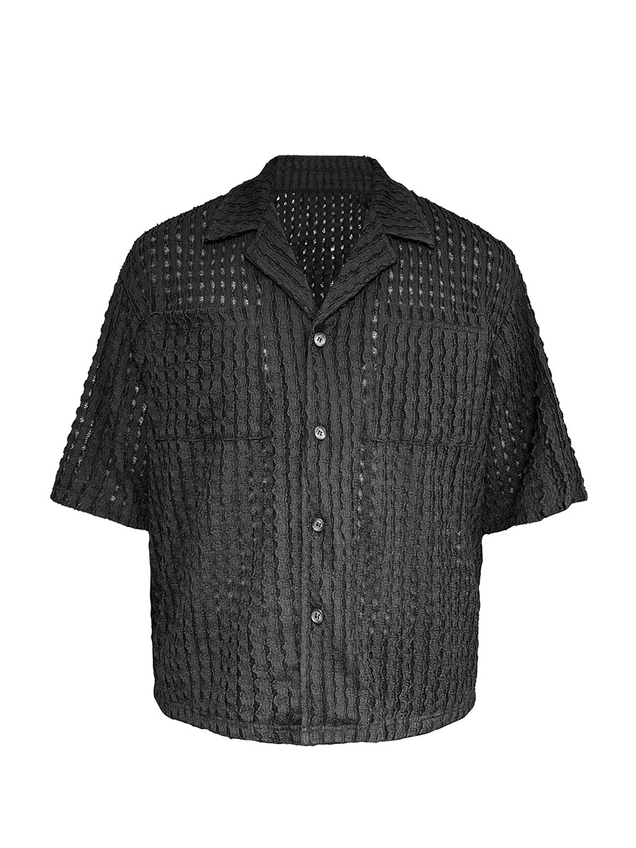 Jcaesar Sprider Web Spider Web Short-Sleeve Shirt Black, Hollow Mesh Texture, Short and Wide Fit