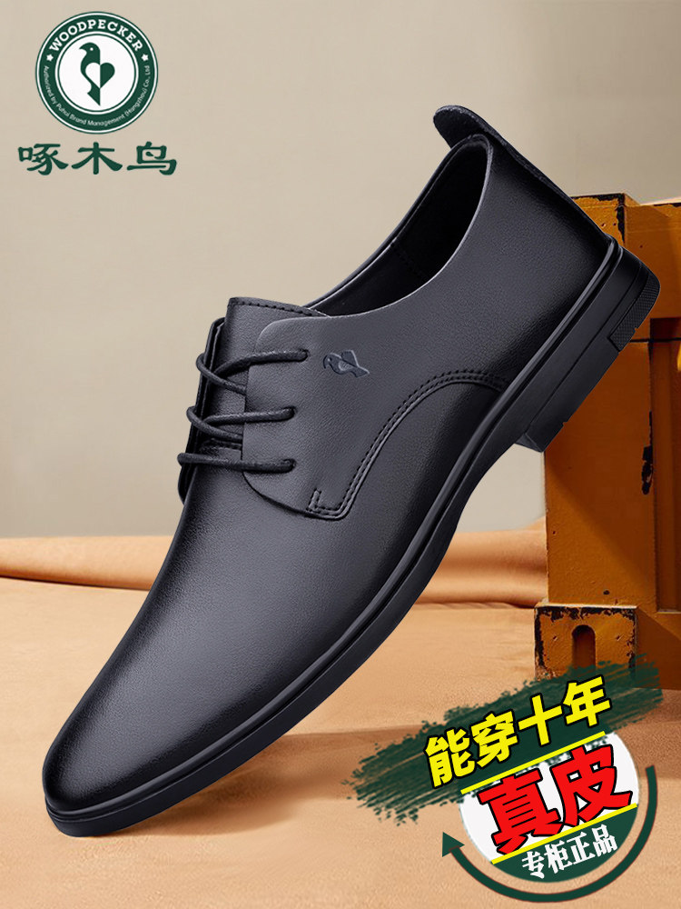 Woodpecker Men's Shoes 2025 Summer Business Shoes Soft Sole Lace-Up Hollow Formal Leather Shoes Men's Cowhide Men's Driving Shoes