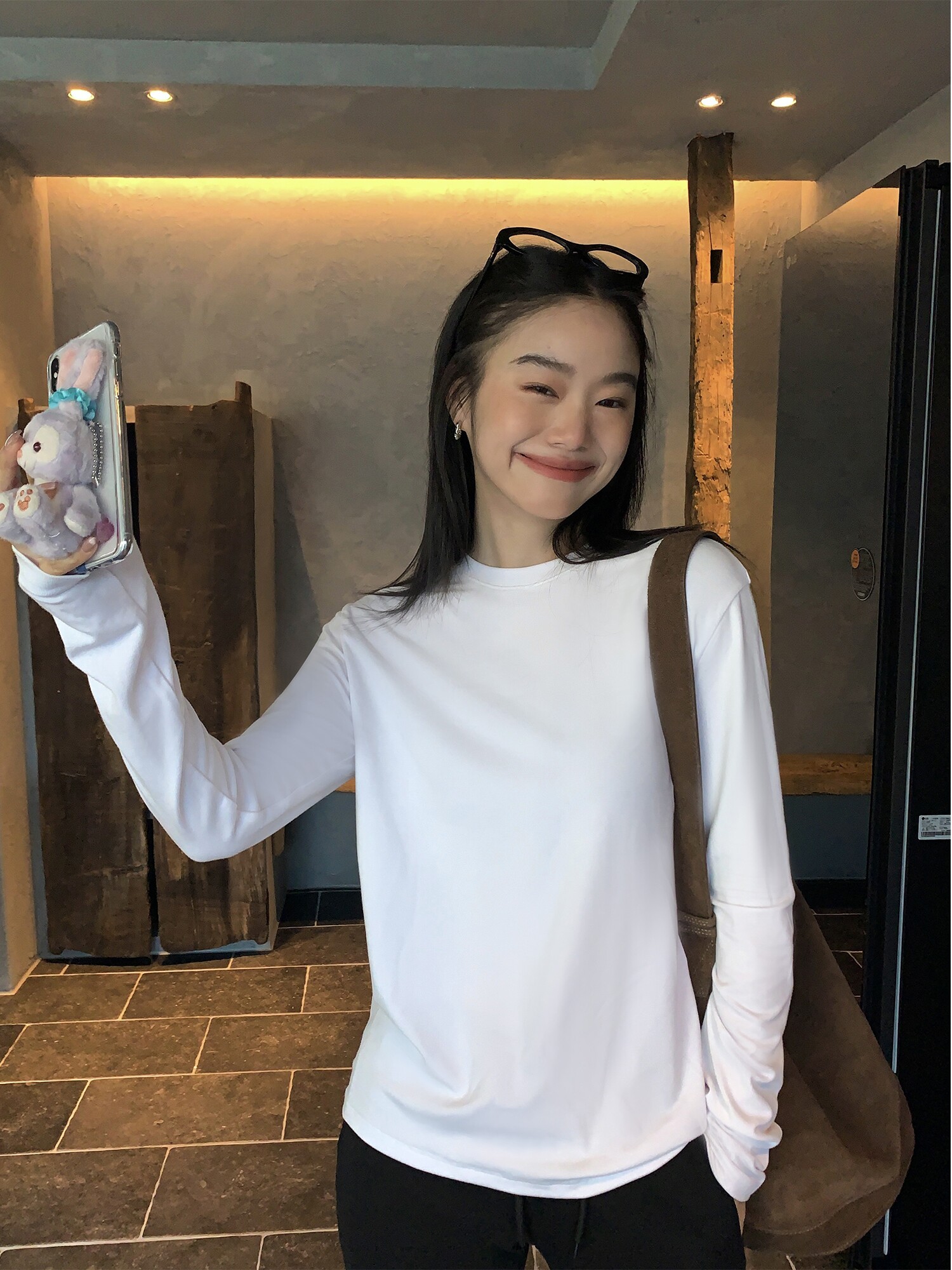 Pusumede Is a Must-Have for Everyone: a White Round-Neck Knit Base Shirt for Women, Long-Sleeved T-Shirt, Loose and Versatile Top