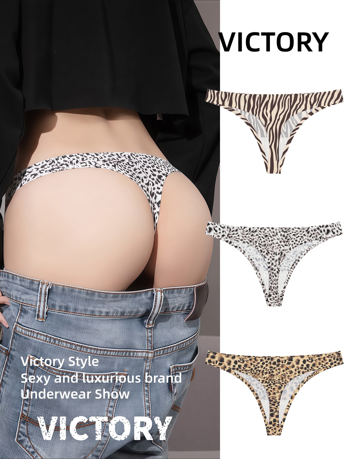 Victoria Seamless Thong Women's Underwear 2025 New Ice Silk Sexy Leopard Print Women's Sports Yoga T-Pants