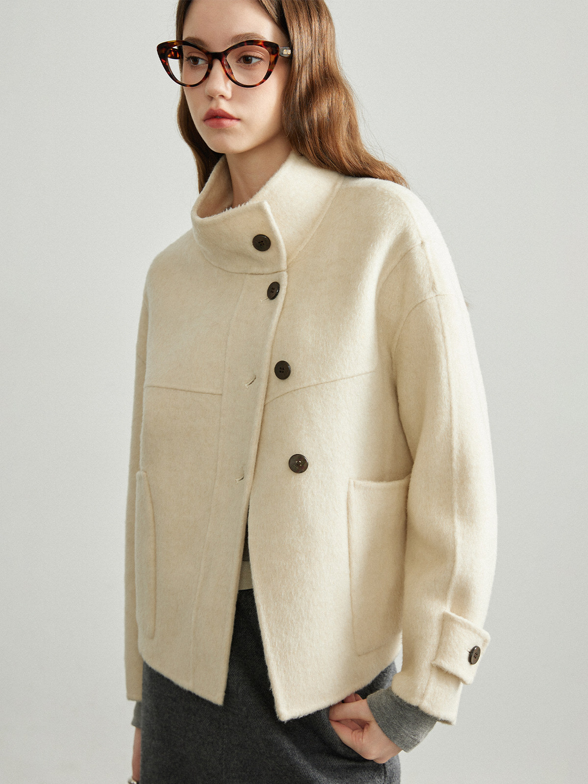 Realistique Wool Double-Sided Woolen Coat Women's Short Autumn and Winter High-End Stand-Up Collar Woolen Coat