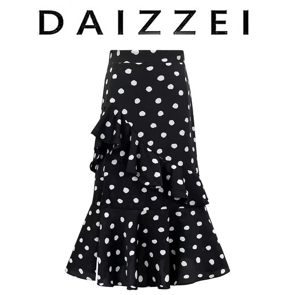 Daizzei~Irregular Polka Dot Fishtail Skirt 2025 New Elegant A-Line Skirt Mid-Length Chiffon Skirt for Women