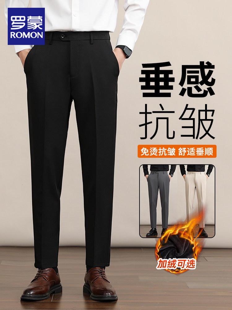 Romon Men's Slim-Fit Straight-Leg Trousers for Autumn, Business Casual Wrinkle-Resistant Drape Nine-Point Suit Pants