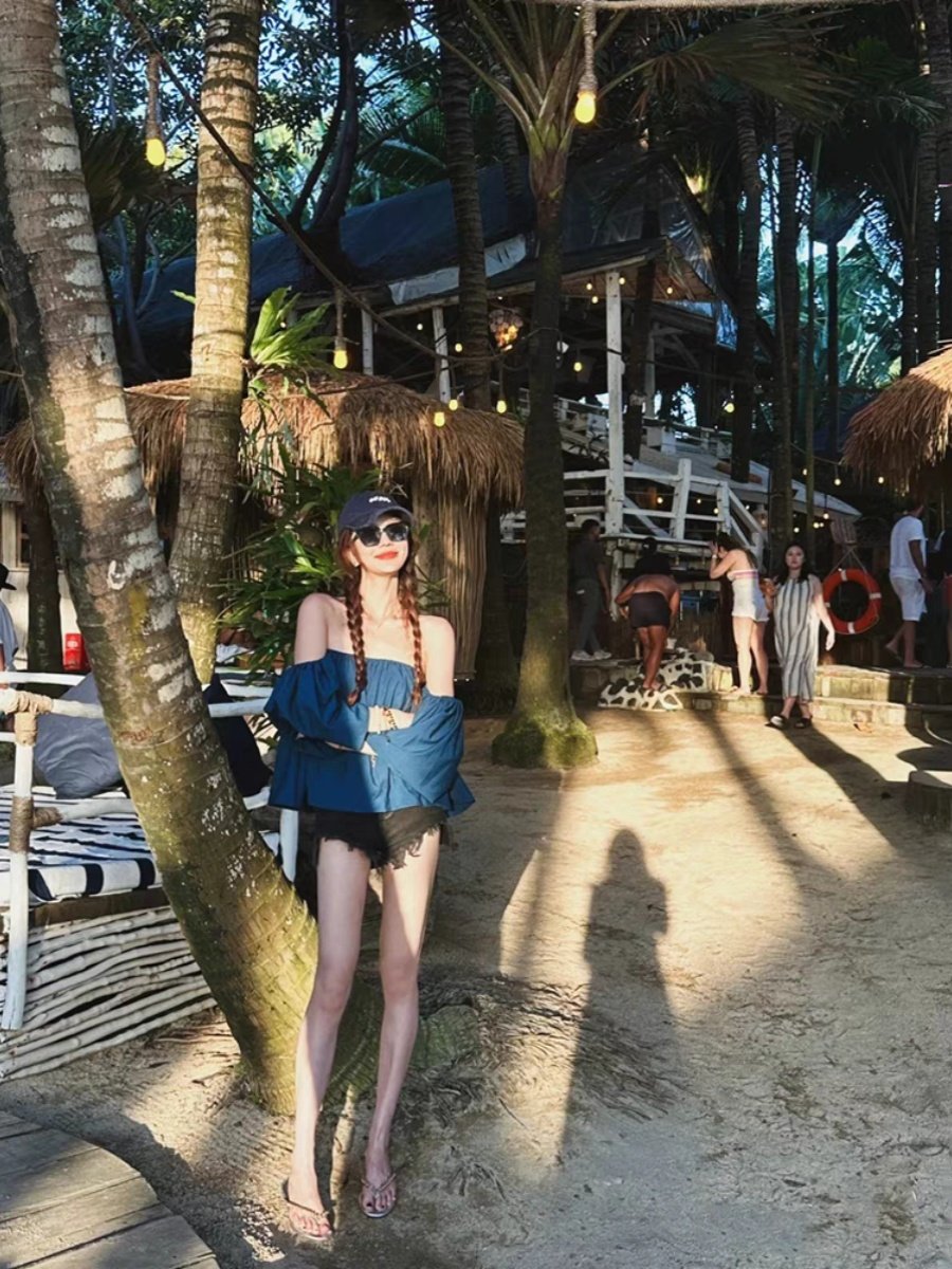 Summer Loose-Fitting Beach Vacation Tops for Women, Thai Island Travel Hot Girl Style Shirts, Beautiful Tops for Taking Photos in Sanya