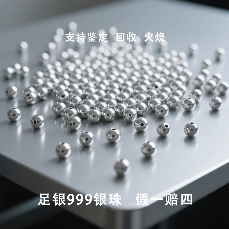 999 Pure Silver Hollow Silver Beads Loose Beads for Bracelets and Necklaces DIY Silver Jewelry Accessories Round Pure Silver Beads Round Beads